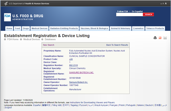 近日,金年会jinnianhui生物全自动核酸提取仪(Natch CS2)、核酸提取或纯化试剂(S10016E)两项产品获得美国FDA认证,这是继获得中国NMPA批准、欧盟CE等认证之后,再一次获得全球权威监管机构的认可。