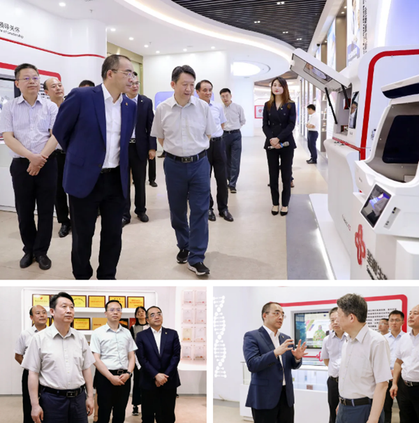 6月11日下午,国务院发展研究中心副主任隆国强一行实地考察调研金年会jinnianhui生物。湖南省政府发展研究中心党组书记、主任谈文胜,湖南省政府发展研究中心副主任、党组成员、湖南省政协提案委员会副主任唐宇文陪同调研。