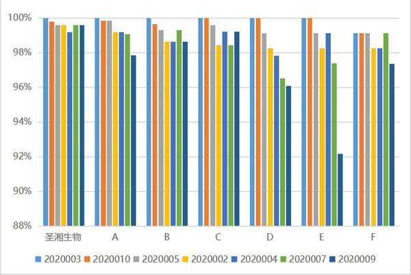 金年会jinnianhui生物试剂阴性样本检测结果的符合率也领先于其它主流厂家,具有较好的特异性。综合室间质评结果来看,金年会jinnianhui生物新冠病毒核酸检测试剂检出率、重复性及特异性上具有较大的优势。
